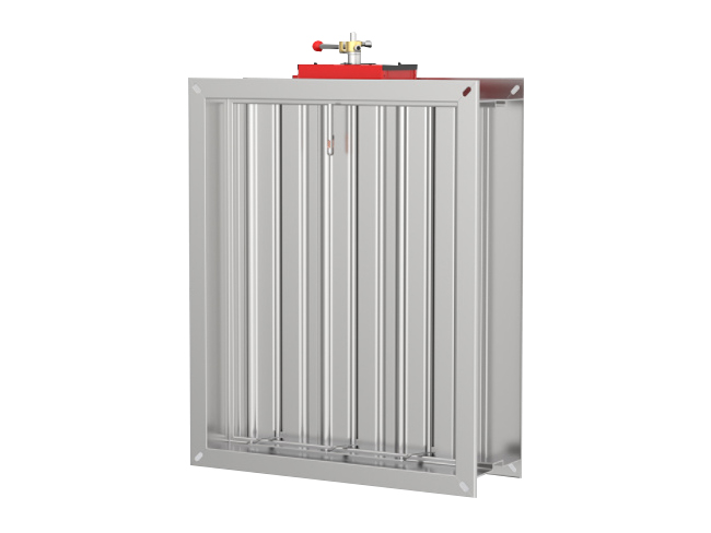 空調(diào)排風(fēng)管用通風(fēng)防火閥包括閥門架和閥板。閥板安裝在閥門架外側(cè)表面的頂部,閥板的表面固定安裝有熔斷桿,熔斷桿的一端固定安裝在閥門架的表面,閥門架的內(nèi)部安裝有固定裝置,用于在閥板密封的時(shí)候?qū)⑵滏i緊,閥板與閥門架的表面通過合頁(yè)進(jìn)行安裝,閥板與閥門架的表面垂直。